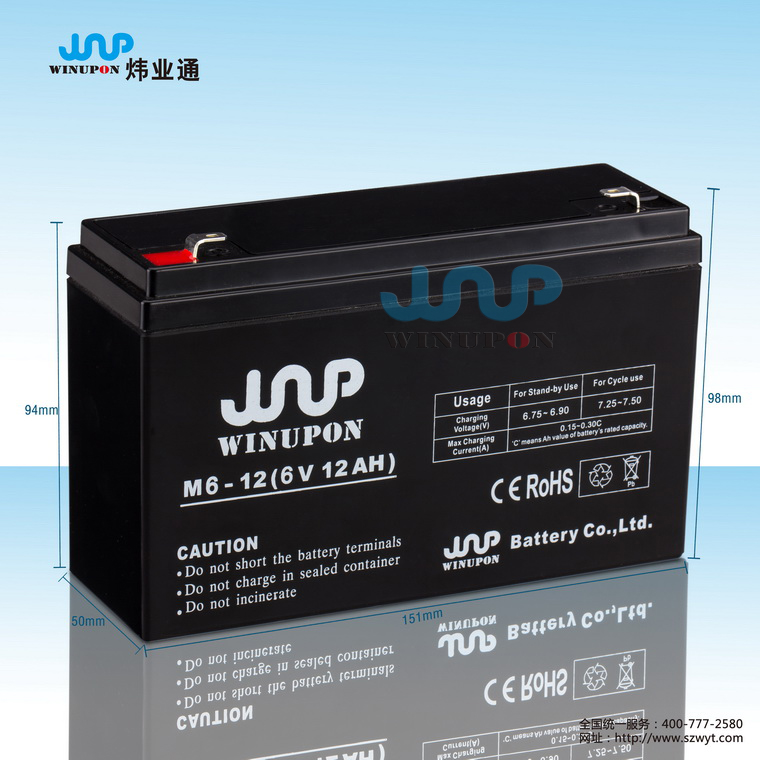 | 規(guī)格型號(hào) | 6V12AH | 外形尺寸(±2mm) | 約重1.60KG | |||