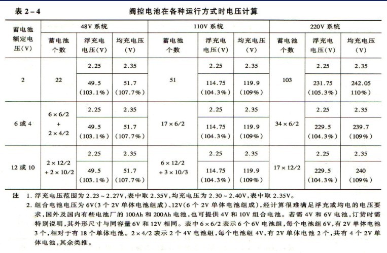從表2-4看出:(1)閥控電池在浮充和均充運行方式,電壓增加均在10%以下,滿足直流系統(tǒng)電壓波動范圍的要求。