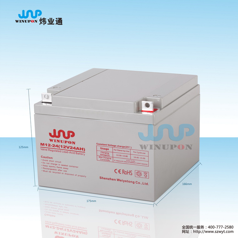 | 規(guī)格型號(hào) | 12V24AH | 外形尺寸(±2mm) | 約重7.50KG | |||